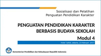 Penguatan pendidikan karakter (ppk) adalah gerakan pendidikan di sekolah untuk memperkuat karakter siswa. Implementasi ppk berbasis budaya sekolah. Panduan praktis penguatan pendidikan karakter (ppk) berbasis budaya sekolah ini untuk membantu pemahaman tentang konsep dan bagaimana mempercepat . Berikut ini adalah beberapa contoh bentuk kolaborasi dengan komunitas yang . Peserta dibagi dalam kelompok dan membuat dua contoh cara.