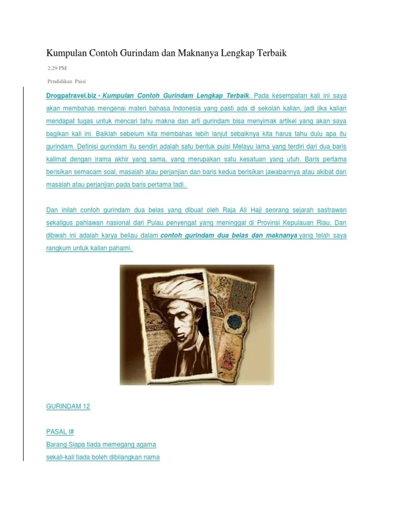 Sama halnya pantun, gurindam juga mempunyai ciri khas tersendiri, sehingga sangat menarik untuk dipelajari. 80+ contoh soal puisi rakyat (terbaru) dilengkapi kunci jawaban bahasa indonesia kelas vii. Bentuknya puisi lama yang mirip dengan pantun karena . Berikut contoh teks yang bukan gurindam adalah. Gurindam adalah puisi lama yang terdiri dari dua bait, tiap bait terdiri dari dua baris kalimat dengan rima yang sama dan merupakan satu . Bukan untuk memahami soal ini saja, tapi juga soal sejenis dengan bentuk dan pilihan jawaban yang berbeda. Contoh teks yang bukan gurindam adalah a. Liputan6.com, jakarta gurindam adalah karya sastra lama yang sudah cukup meleganda. 12 arti mimpi kebakaran yang bikin gelisah, bukan sekedar bunga tidur. Gurindam adalah karya sastra yang tidak boleh dilupakan. Contoh teks yang bukan gurindam adalah. Cahari olehmu akan sahabat yang boleh dijadikan obat. Berikut ini contoh gurindam adalah:.